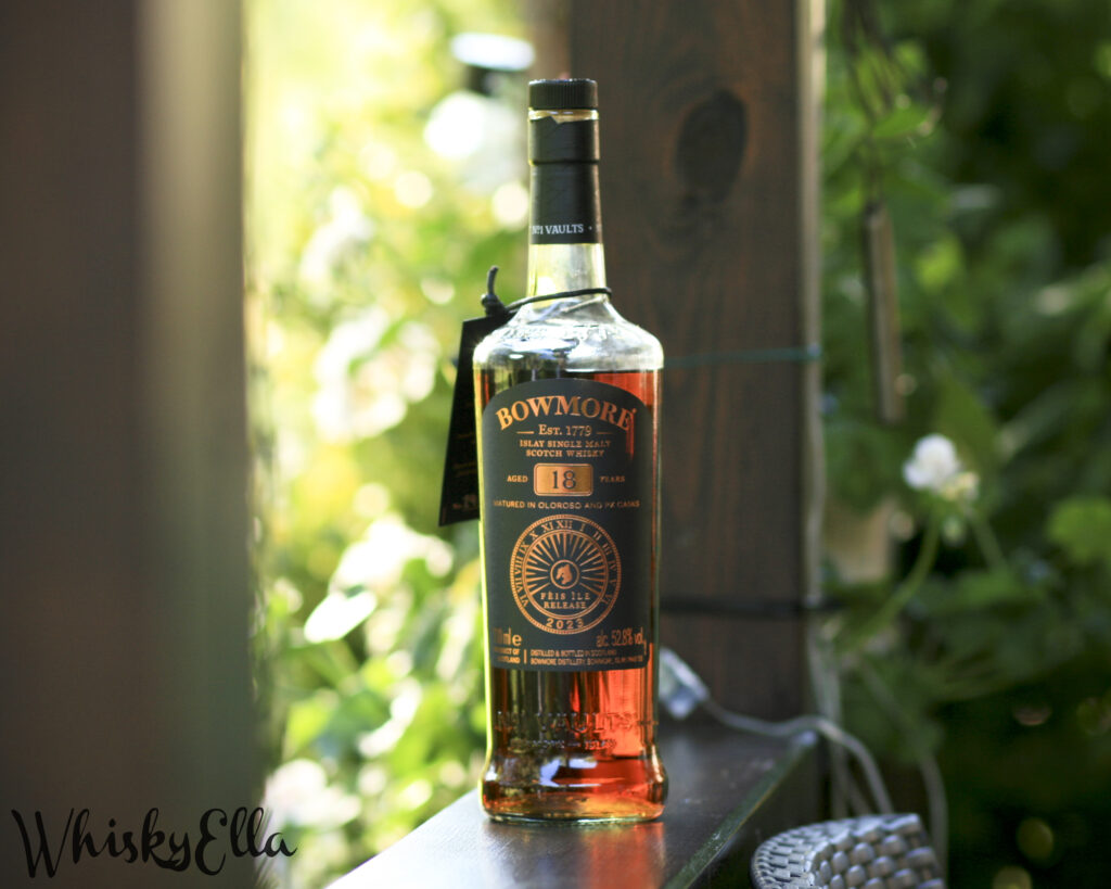 Bowmore jest jedną z moich ulubionych szkockich destylarni i pojawiała się na blogu już wielokrotnie. Miałam też okazję odwiedzić ją dwa razy. Jedna z najlepszych degustacji w moim życiu odbyła się właśnie tam, w legendarnym magazynie No.1 Vaults (zobacz – Bowmore 18 years Sherry Oak Cask). Bardzo trafnie opisał tę destylarnię Jarosław Urban w swoim „Vademecum Whisky”: „Bowmore jest whisky tajemniczą, bardzo kompleksową, oferującą z reguły kilka warstw smakowych i przez to sporo emocji.” Po takim podsumowaniu trudno zrobić coś innego niż sięgnąć po kieliszek i sprawdzić, co kryje festiwalowa osiemnastka z 2023 roku.