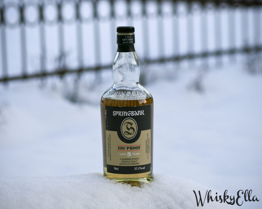Trochę odpłynęliśmy od tematu, więc wróćmy do naszej dzisiejszej bohaterki. Najmłodszy Springbank w historii, dojrzewający zaledwie pięć lat w beczkach po bourbonie i zabutelkowany z mocą 100 proof, czyli 57% alkoholu, w końcu trafia do kieliszka.